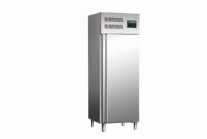 – Materiaal: (behuizing en interieur) RVS – Deur zelfsluitend, afsluitbaar – deuraanslag verwisselbaar – 3 in hoogte verstelbare roosters (2/1 GN) – Digitale temperatuurregeling (DIXELL) – Isolatie: 65 mm – Geforceerde luchtkoeling – Automatische ontdooiing – Temperatuur -2 / +8 °C – Aansluiting: 230 V – 50 Hz – 0,35 kW – Roosters: 3x B…