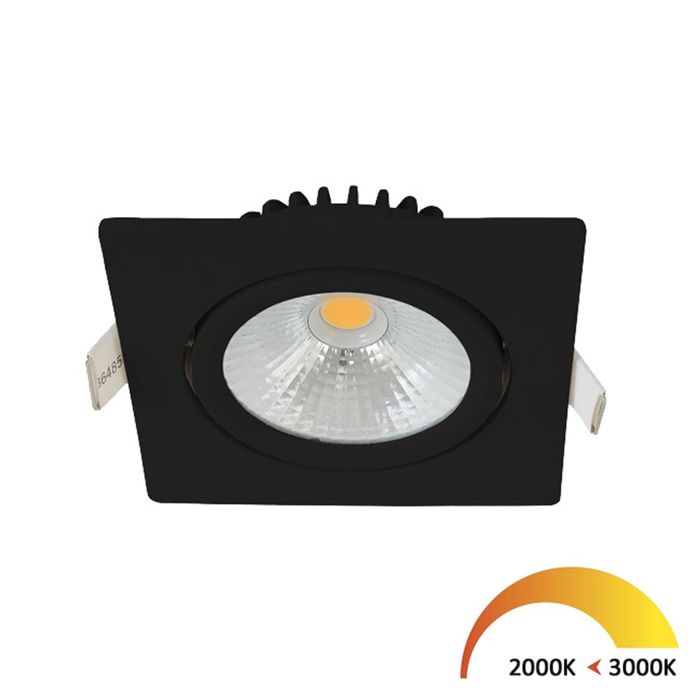Uniek aan deze vierkant zwarte led inbouwspot is de IP54-waarde (spatwaterdicht), de kleine inbouwdiepte (23mm) én de uitstekende dimbaarheid. Bijzonder is de lichtkleur ‘dim to warm’.